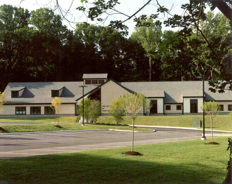 The one-story, 14,500-square-foot Girl Scout service center and headquarters is nestled in the wooded hillside on the outskirts of Philadelphia. The dormers that line the roof and neutral coloring of the building provide a camp-like feel, while the cementitious composite siding offers protection and durability. Inside, large windows provide natural lighting and a beautiful view of the greenery outdoors. The facility is used for volunteer training, meeting space, and offices for administrative staff. The service center also includes a 1,225-square-foot Girl Scout equipment and gift store and a volunteer resource center. The GSSP serves a diverse network of 4,500 adult volunteers who deliver the Girl Scout program to more than 18,000 girls in troops and camp programs in three counties.