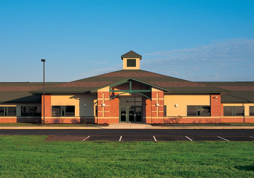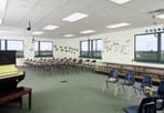 This 55,000-square-foot structure was designed to keep costs at a minimum and yet still provide a safe, durable, and aesthetically pleasing learning environment. The walls are load-bearing steel stud construction with an exterior that combines colored split-faced block and concrete fiber lap siding. The roof system is conventional prefabricated wood trusses with asphalt fiberglass shingles. The floor plan for MOT contains a total of 28 classrooms divided among its three wings, as well as designated areas for art, music, and science. A large multipurpose room serves as the gymnasium, auditorium, and cafeteria. The entire building is equipped with high-speed data wiring and video monitoring.