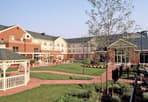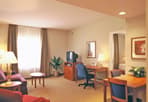 The Homewood Suites Harrisburg East in Pennsylvania is a three-story extended stay hotel. The stepped brick and patterned EIFS combine with a sloped shingle roofing to project a residential appearance. The interior reflects the local flavor of Pennsylvania’s capitol city. Each of the 105 suites includes a fully equipped kitchen, living area, private bedroom, and bath with granite counter tops and showers. Glass curtain wall elements on the indoor pool/spa/fitness building face the paved terrace courtyard which features a basketball court, walkways, beautiful landscaping, and a putting green. A two-story lodge with a fireplace is used for the buffet breakfast and dinner served each day. The hotel also has a large meeting room, board room, and guest laundry room.