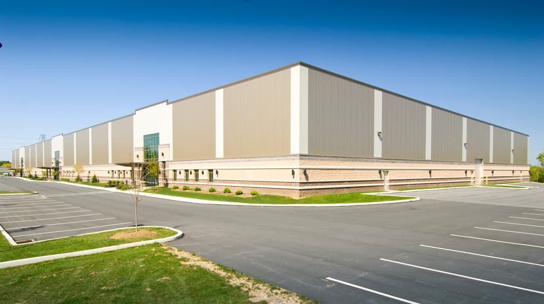 This attractive one-story structure in Greenfield Corporate Center in Lancaster County, PA provides the real estate developer with customizable industrial and office space for tenants. The building consists of a steel frame structure with steel roof joist and girders, steel roof deck, anda non-load bearing concrete unit masonry cavity wall base. The exterior features a unique split face and ground face block design that utilizes three colors of block and 2-foot wide; 3" insulated metal wall panels. Twenty (20) overhead doors (8'-10') on the back of the building while two 12 x 14 high drive in doors with paved ramps are located on each side of the building. Three-curtain wall entry elements feature custom designed steel structural canopies that add visual interest to the main entrances of the facility.